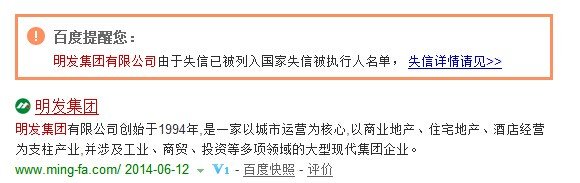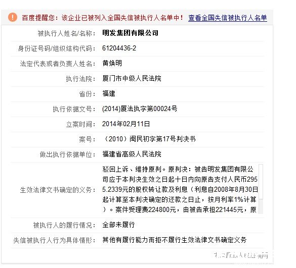 近日有网友爆料,明发集团有限公司由于失信被列入国家失信被执行人名单。在百度搜索中,有网友搜索明发集团,出现提醒列表,引发网友讨论。