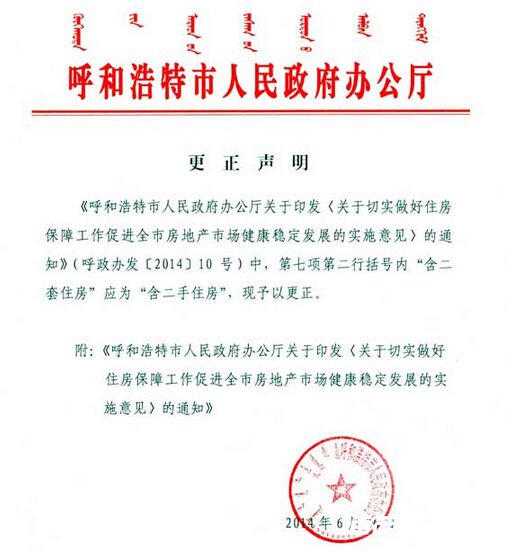 昨日,内蒙古呼和浩特市放松限购发文又被撤回一事在坊间流传甚广,媒体纷纷表示这是地方政府在松绑楼市调控中的又一次试探。然而与以往不同,呼市将更正文件很快便重新发布,正式确认将放松限购。呼和浩特也成为在本轮楼市调控中首个正式确认放松限购的城市。