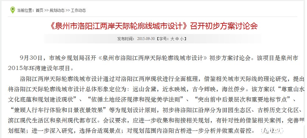 在今年的9月底,泉州市城乡规划局召开《泉州市洛阳江两岸天际轮廓线城市设计》初步方案讨论会,该项目是泉州市2015年环湾建设年项目。