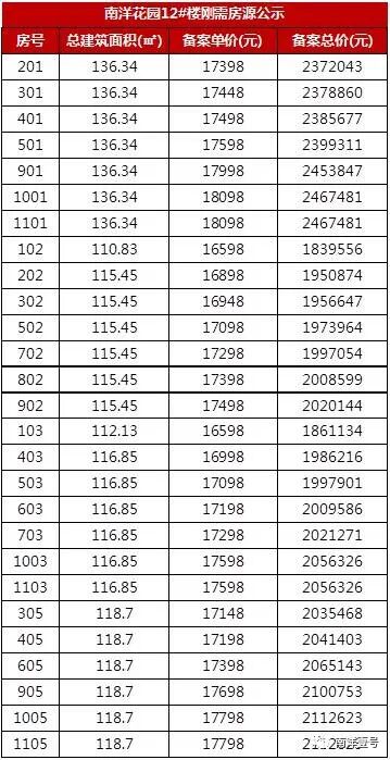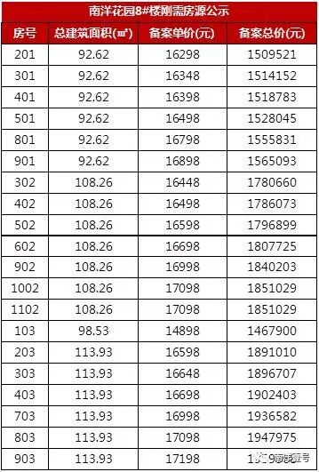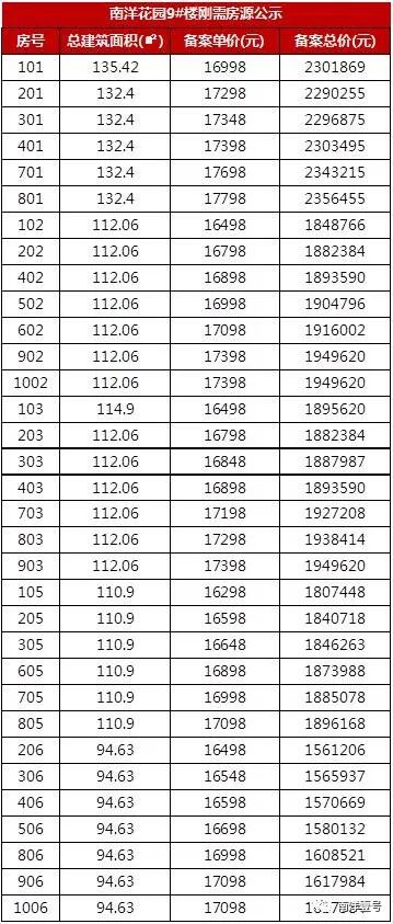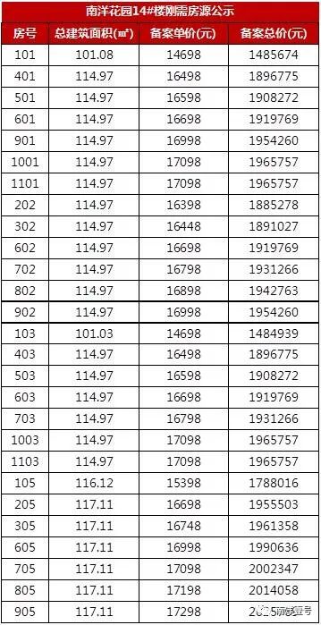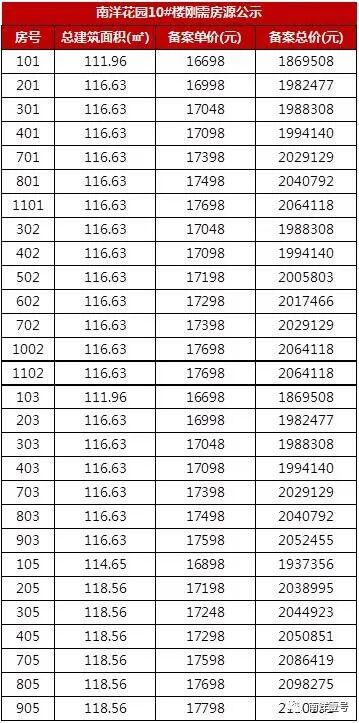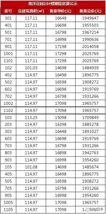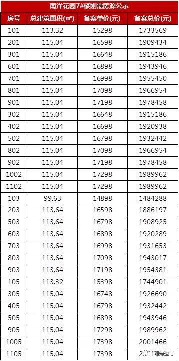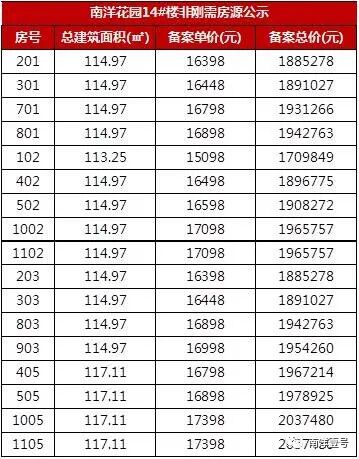 南洋花园一期7#-10#、12、14、15号楼刚需房源公示