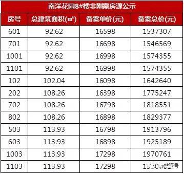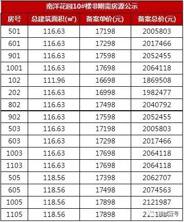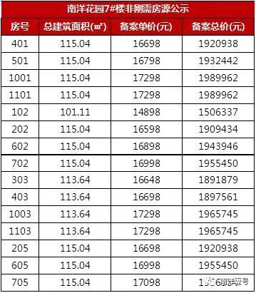 南洋花园一期7#-10#、12、14、15号楼非刚需房源公示