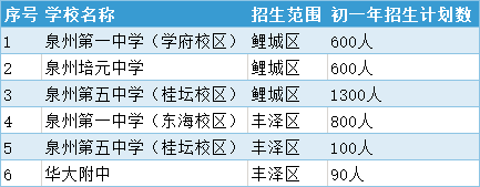 2020年泉州市直初中招生计划和范围统计表