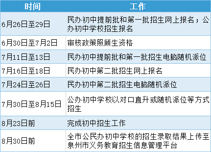 八、2020年泉州市初中招生时间安排