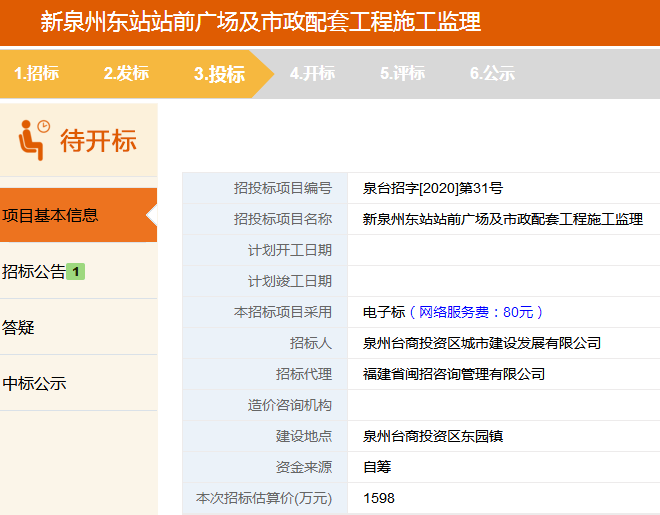 7月1日,新泉州东站站前广场及市政配套工程施工监理招标公告发布。