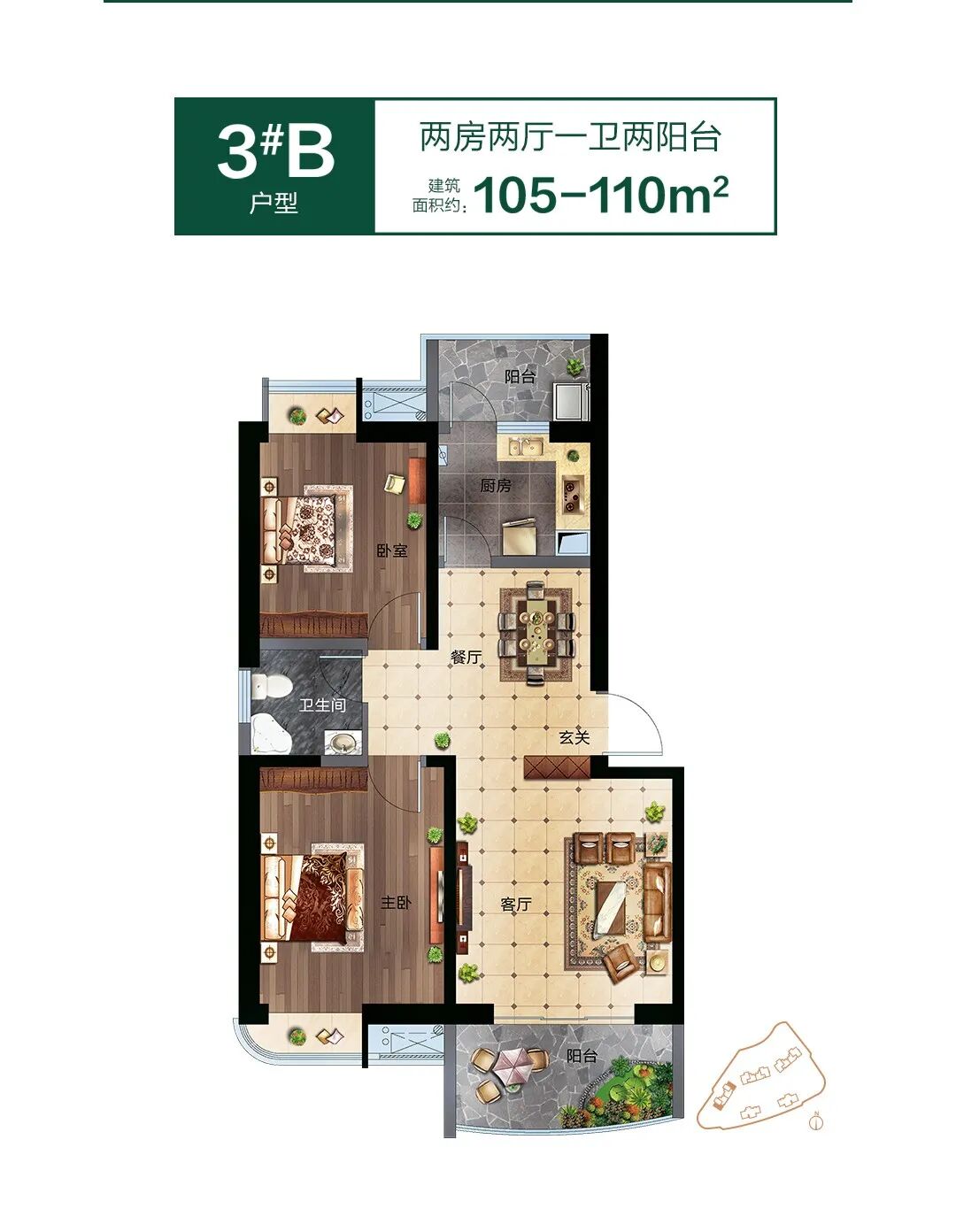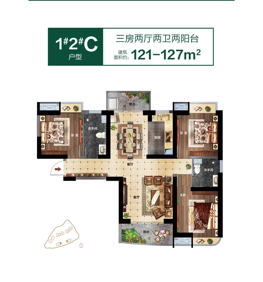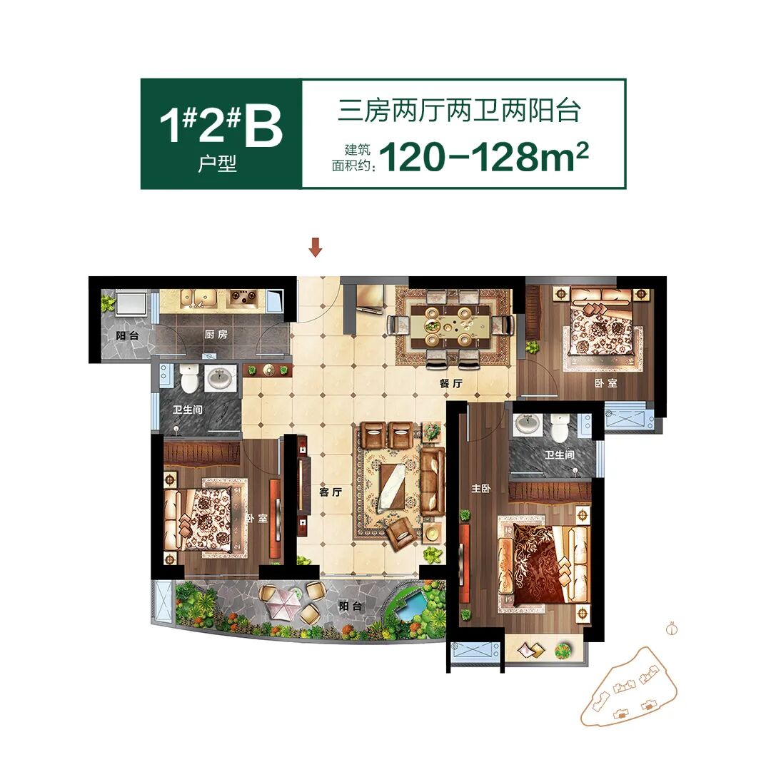 户型建面约105-190㎡的2-4房