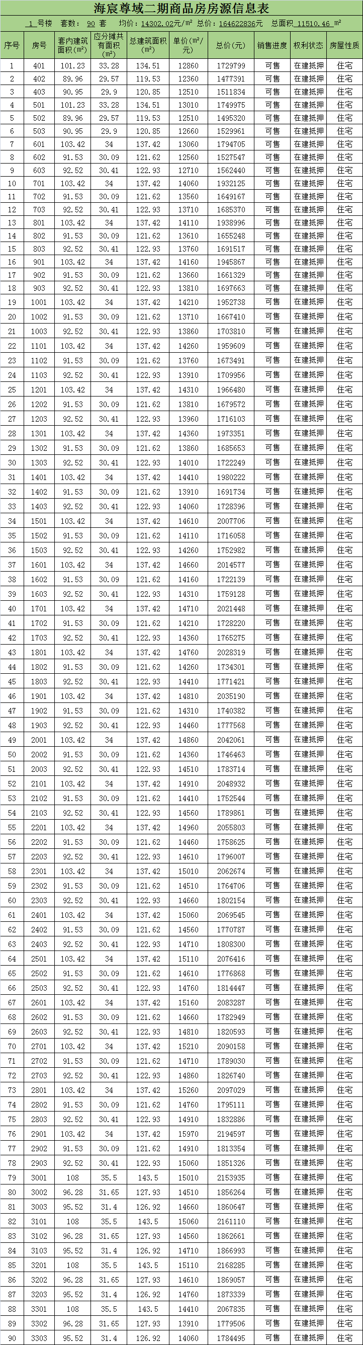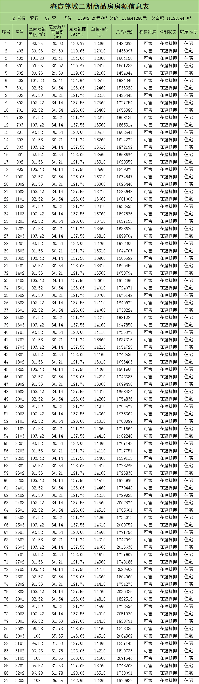 房价表