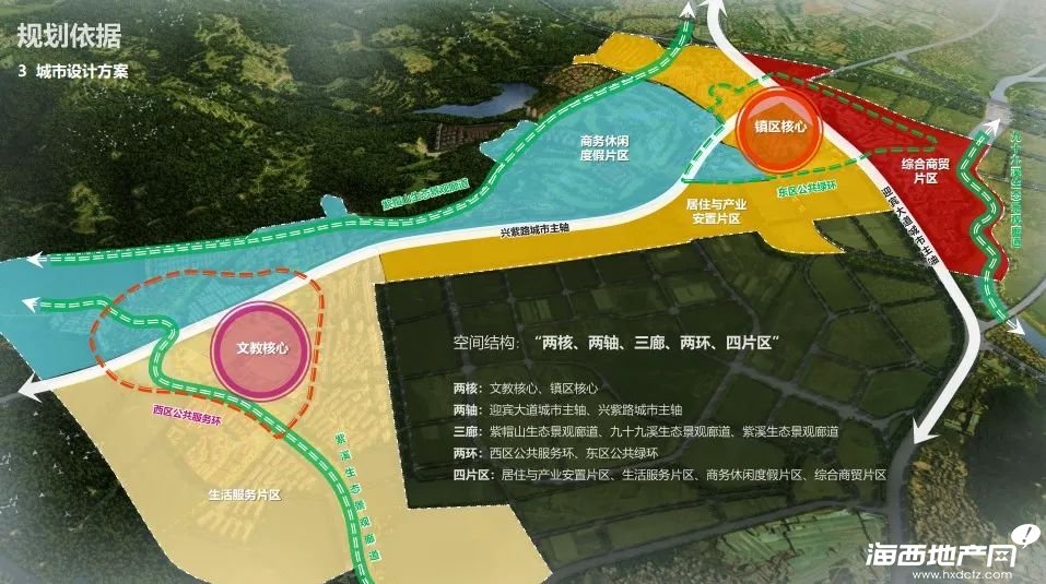 两轴:迎宾大道城市主轴、兴紫路城市主轴