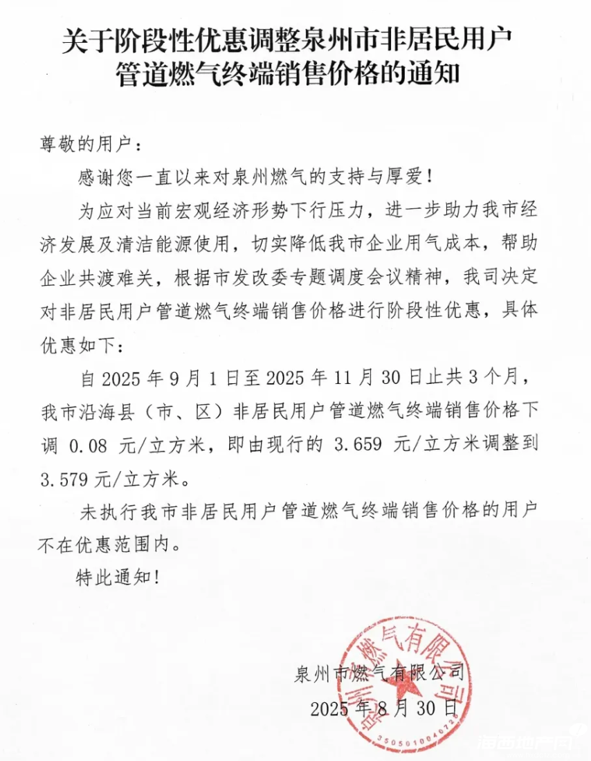 好消息!泉州这一燃气价格下调!_海西地产网
