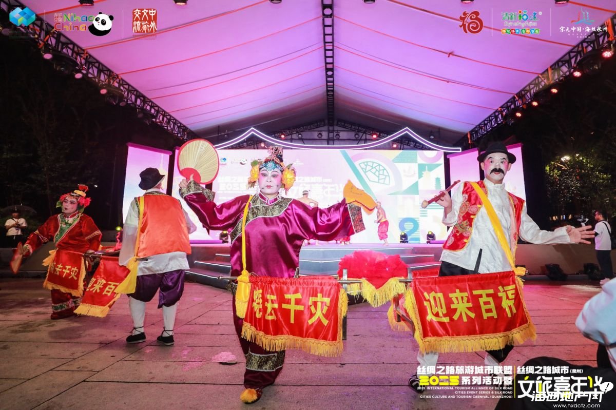 活动在闽南特色的民俗表演《拍胸舞 + 火鼎公婆》拉开帷幕。泉州乃至丝路沿线的文化瑰宝在非遗展演环节一一亮相,泉州市提线木偶戏传承保护中心带来的《狮子舞》灵动传神,展现非遗技艺的非凡魅力;阿拉伯舞蹈《海市蜃音》带领观众穿越时空,感受异域风情;南音表演唱《百鸟归巢》婉转动人,被誉为“中国音乐活化石”的千年雅乐令人沉醉;武术表演《南少林雄风》刚柔并济,彰显中华武术的博大精深;戏曲荟萃《市井大观园》则融合泉州梨园戏、高甲戏、打城戏等多种地方戏曲经典片段,再现泉州戏曲艺术的百花齐放。