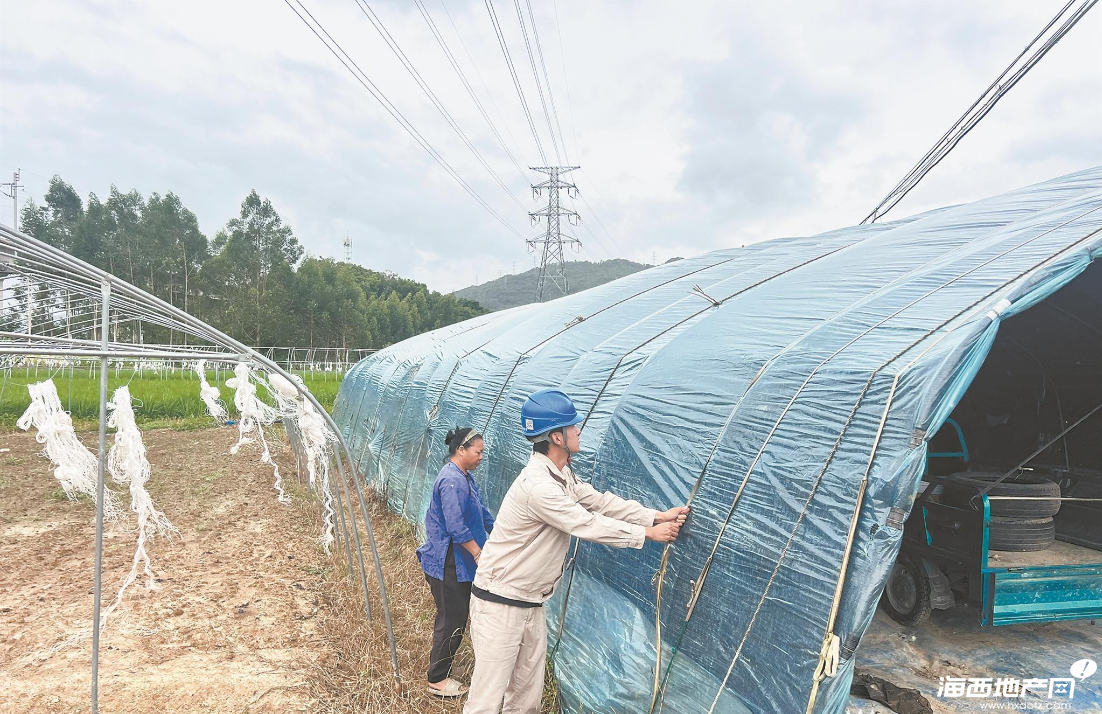 运维人员对田间大棚逐一检查、加固(邱晋联 摄)