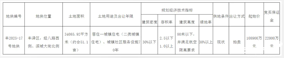 丰2025-17号地块国有建设用地使用权出让公告