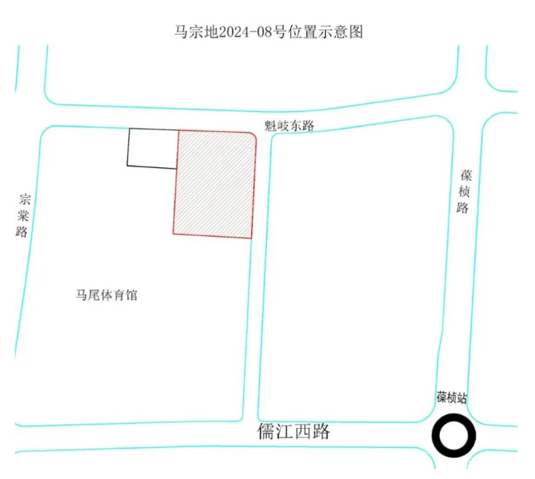 马宗地2024-08号位于马尾区快安片区,原马尾体育馆东北角,土地面积10340.46㎡(约15.51亩),用途为体育商业综合用地,容积率上限1.0(商业计容面积≤4000㎡),限高24米。