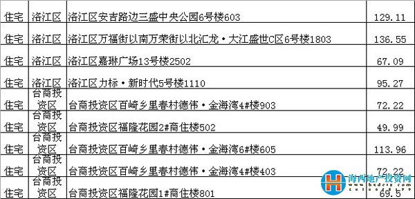 根据海西地产投资网研究中心分析得出,2012年7月25日泉州住宅成交26套,其中丰泽成交14套,鲤城成交2套,洛江成交5套,台商投资区成交5套;泉州商业成交15套,其中丰泽成交4套,洛江区成交11套。
