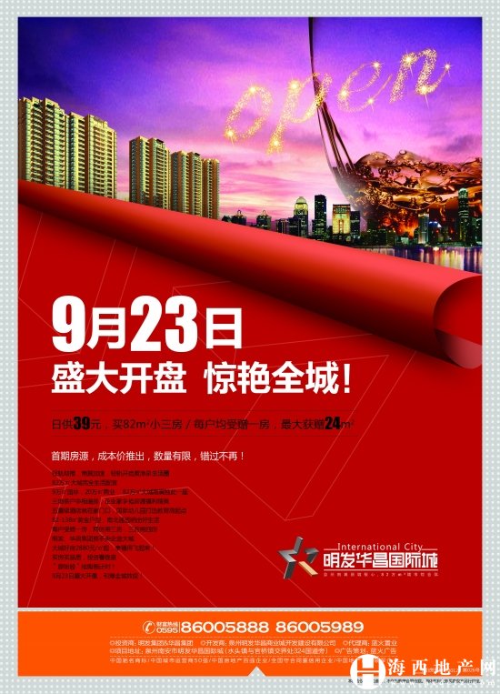 (海西地产网9月21日报道)明发华昌国际城项目将于9月23日(本周日)盛大开盘,日供39元买82平小三房,每户均受赠1房,最大获赠24平。