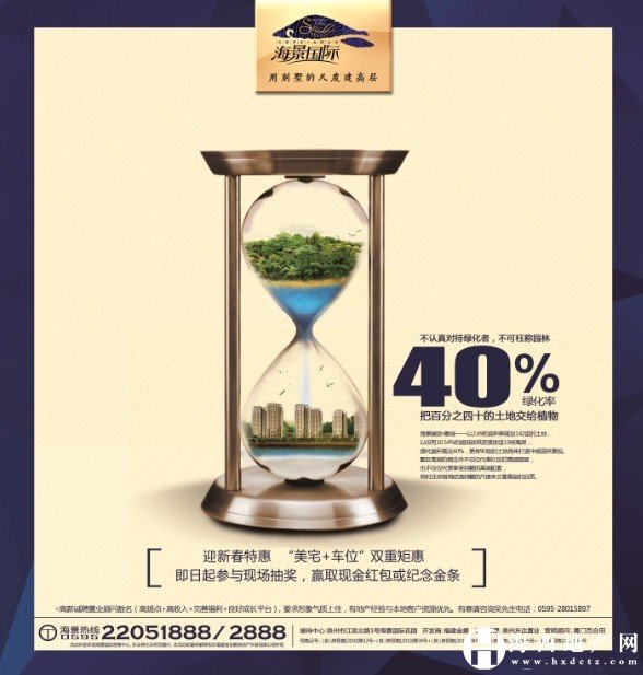 (海西地产网1月16日报道)海景国际项目用别墅的尺度建筑高层,40%的绿化率,把40%的土地交给植物。现该项目举行迎新春特惠,“美宅+车位”,即日起参与现场抽奖,赢取现金红包或纪念金条。