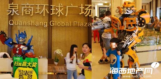 6月7日14时30分泉商环球广场5A甲级写字楼样板房盛装启幕!活动现场吸引数百客户到场参观,盛况空前!主办方活动现场除了给到场嘉宾准备了丰富的餐点、冷热饮外,更有真人大黄蜂与擎天柱到场助阵捧场。活动至五点半结束,人潮依然涌动,久久不愿散去!到场的嘉宾在参观完实景一线江景样板房后,无不发出声声赞叹,也更坚定了未来滨江商务区飞速发展的前景,南江滨洼地价值尽显!
