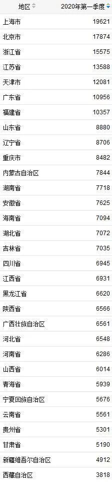※31省份一季度居民人均可支配收入,来自国家统计局。 居民可支配收入,指居民可用于最终消费支出和储蓄的总和,即居民可用于自由支配的收入,既包括现金收入,也包括实物收入。