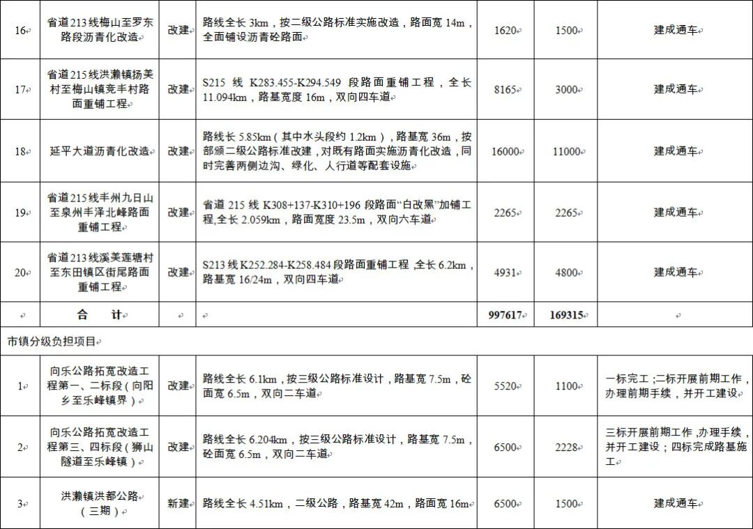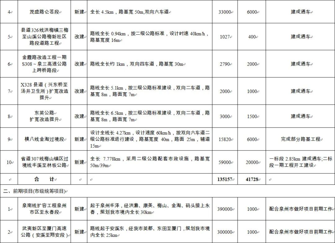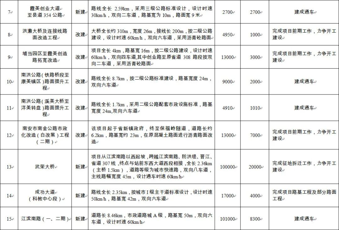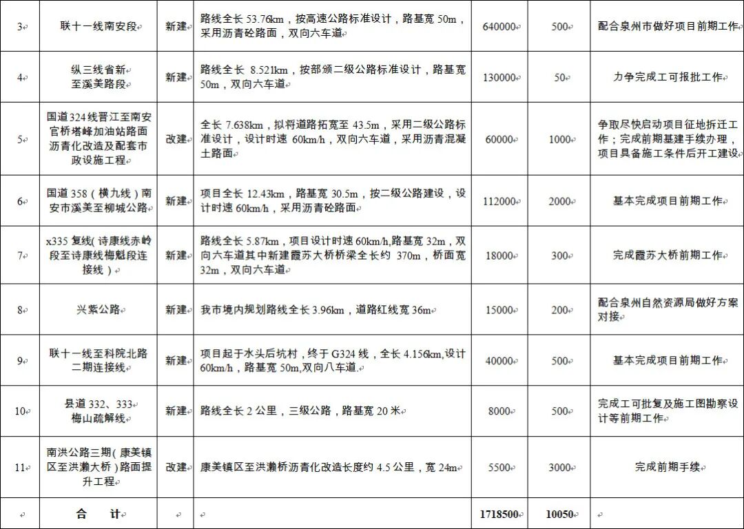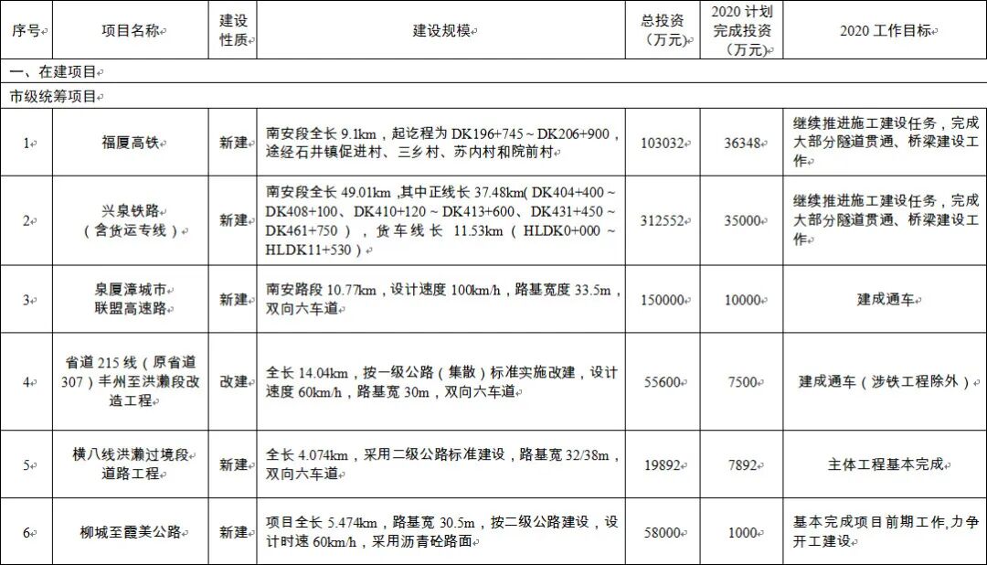 南安市2020年道路交通项目建设计划出炉