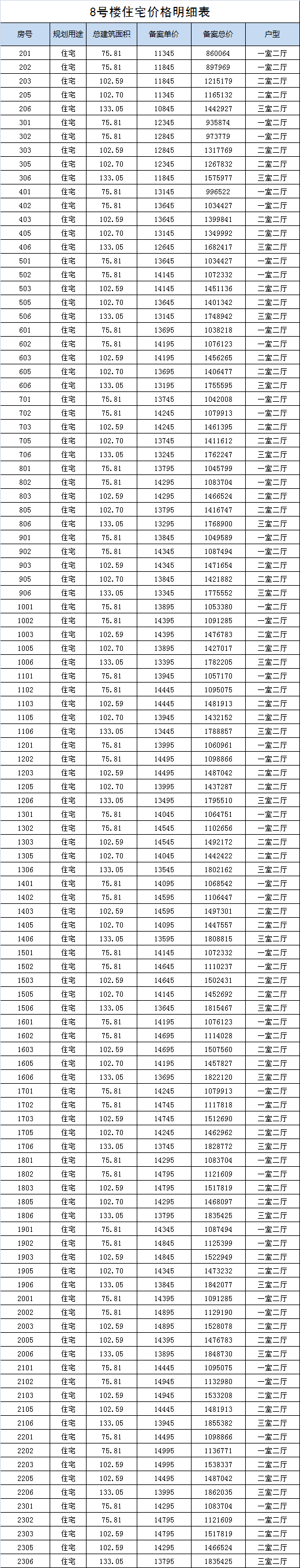 其中住宅房源258套,价格区间:10845-15785元/㎡,整体均价:约14200元/㎡,户型:建面约75-145㎡的2-4房。