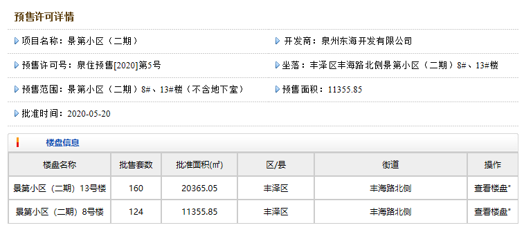 据泉州住建局网站显示,位于东海板块的东海湾门第二期8#、13#楼获批预售,预计即将启动认筹。