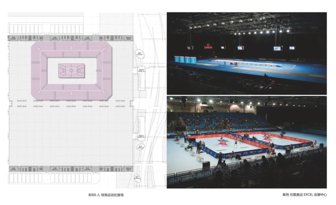 晋江国际会展中心可分为展览区和会议区,展览区分为中央生态走廊、展览馆、室外展场区、配备停车场及货物堆放区。