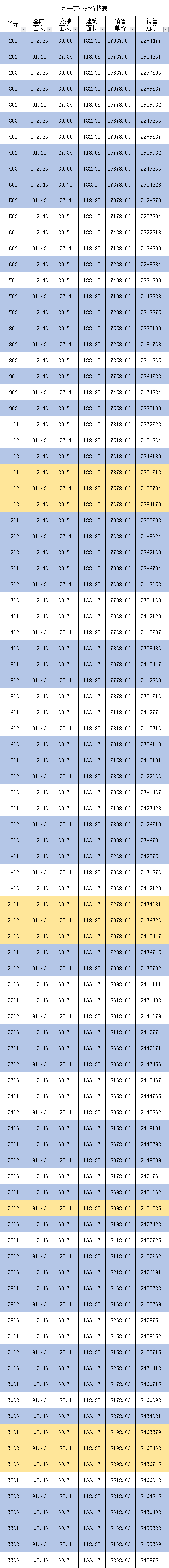 备注:白色为非刚需房源 蓝色为刚需房源 黄色为高层次人才房源