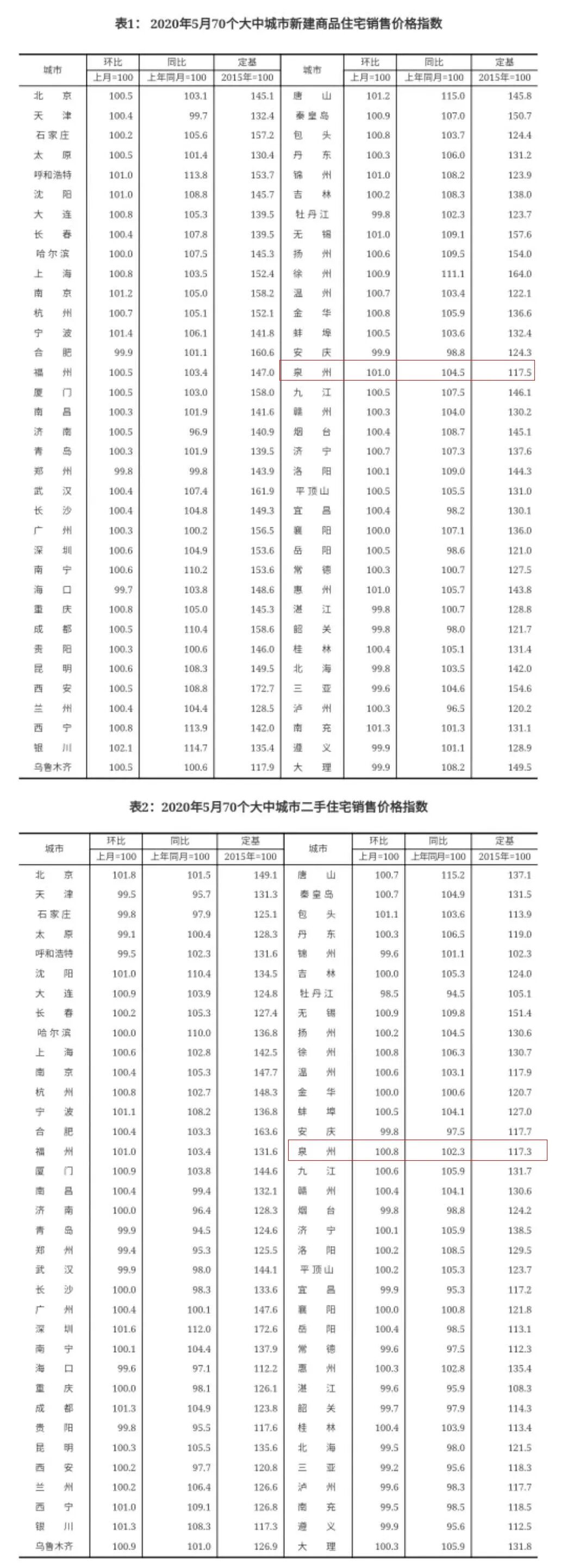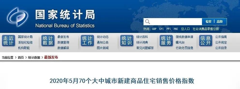 6月15日,国家统计局发布了2020年5月份70个大中城市商品住宅销售价格变动情况。