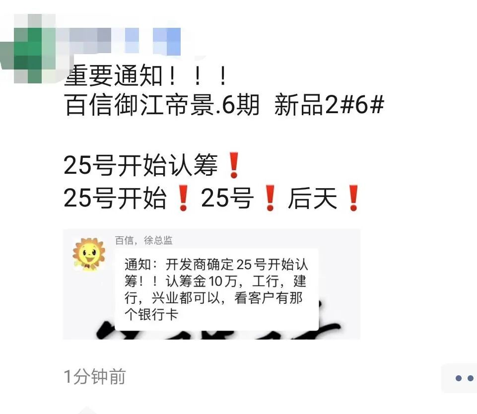 2019年9月,百信御江帝景六期首次开盘推出项目9、10、11#楼面积段103-157㎡3-4房,共计280套房源,当天售罄,整体均价约14800元/㎡,远超目前超过了东海板块的当时大部分楼盘的销售价格。同年12月18日,再推出项目1#8#楼,再度售罄。