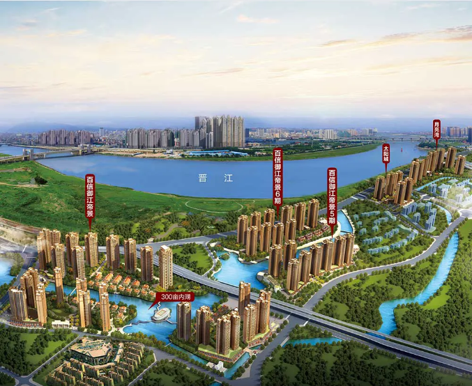 百信御江帝景六期被视作是这个110万平大盘的楼王地块,在地块区位上享有优质的景观视野,前面晋江,对岸既是浦西万达商圈,后面内湖,本身地块三面环水,项目本身资质不俗。