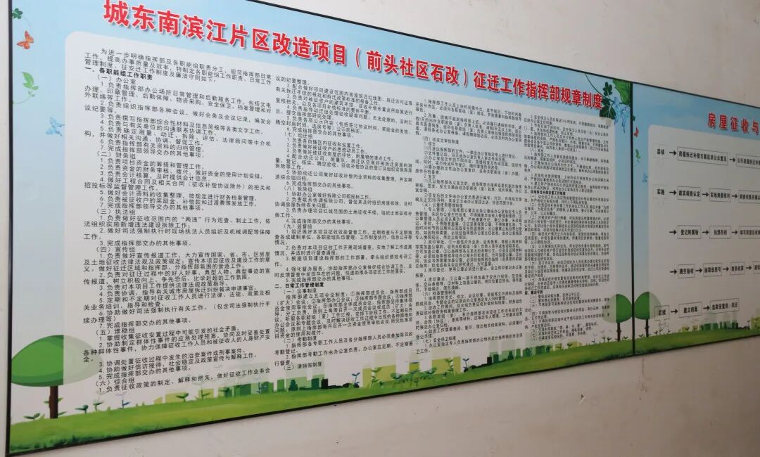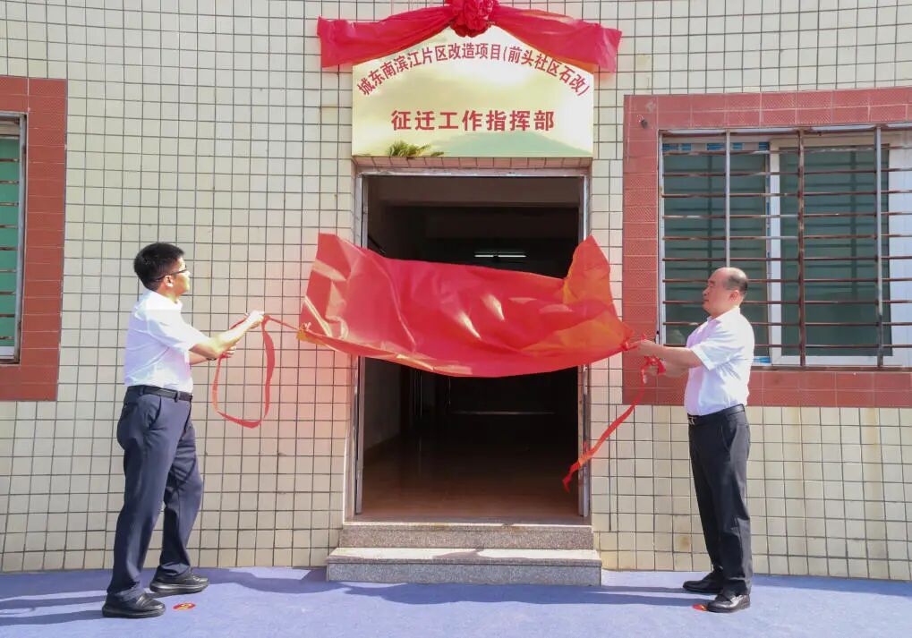 仪式上,区委书记黄景春、区长高金全共同为城东南滨江片区改造项目(前头社区石改)征迁工作指挥部揭牌。在随后参观指挥部办公场所时,区领导强调,指挥部各职能组要迅速进入状态,立即紧张、有序开展各项工作,为征迁工作全面启动打下坚实基础。