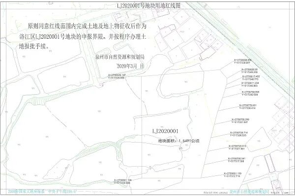 3月7日,泉州市自然资源和规划局在官网发了《LJ2020001号地块红线图批前公示》。据公示文件显示,LJ2020001号地块位于洛江区万安街道滨江路西侧,泉州实验小学洛江校区东侧,用地面积约23.24亩,土地用途为住宅用地-城镇住宅与商服用地-零售商业混合用地。