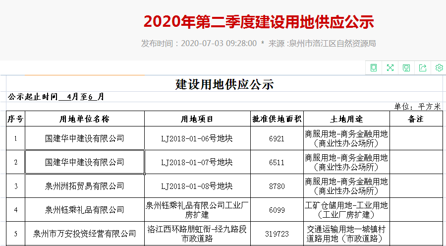 8月14日,2020年度洛江区国有建设用地供应计划和存量住宅用地信息公开。