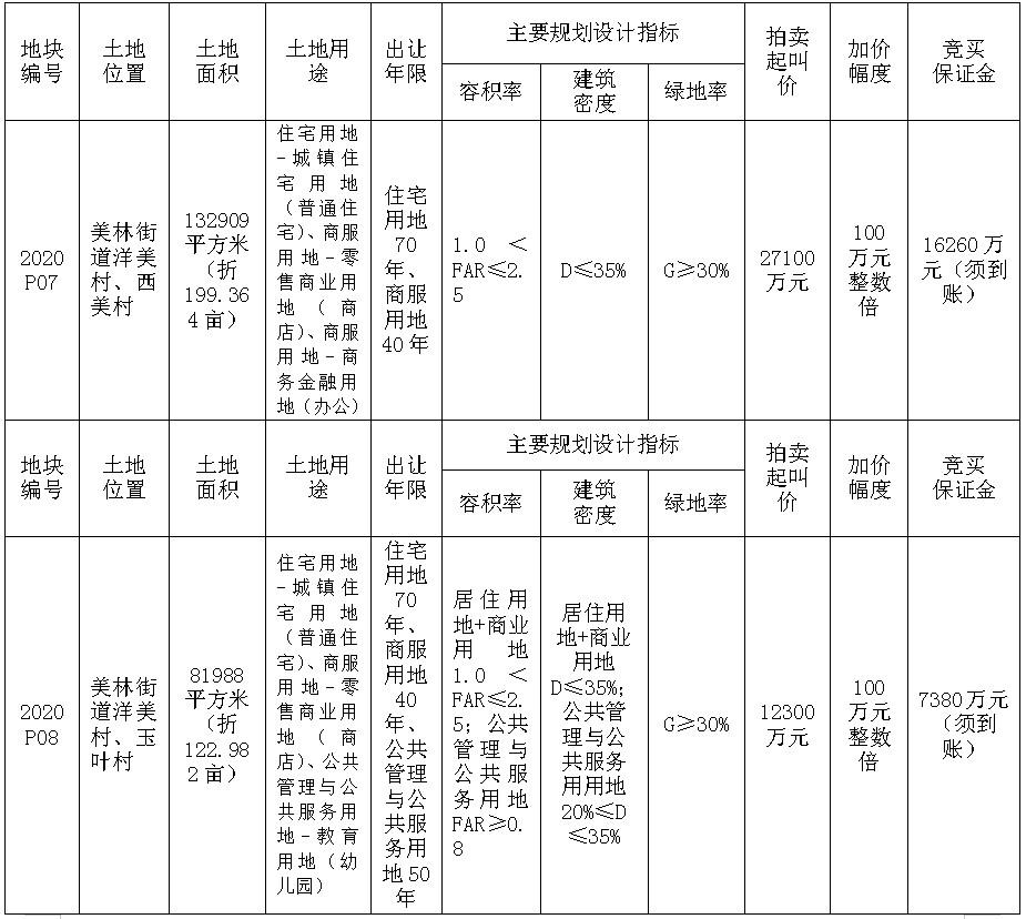 最终,两幅商住地块均由金座置业底价竞得。其中2020P07号地块底价2.71亿元成交,折合楼面价816元/㎡;2020P08号地块底价1.23亿元成交,折合楼面价600元/㎡。而两幅地块住宅毛坯限价均为9000元/平方米。