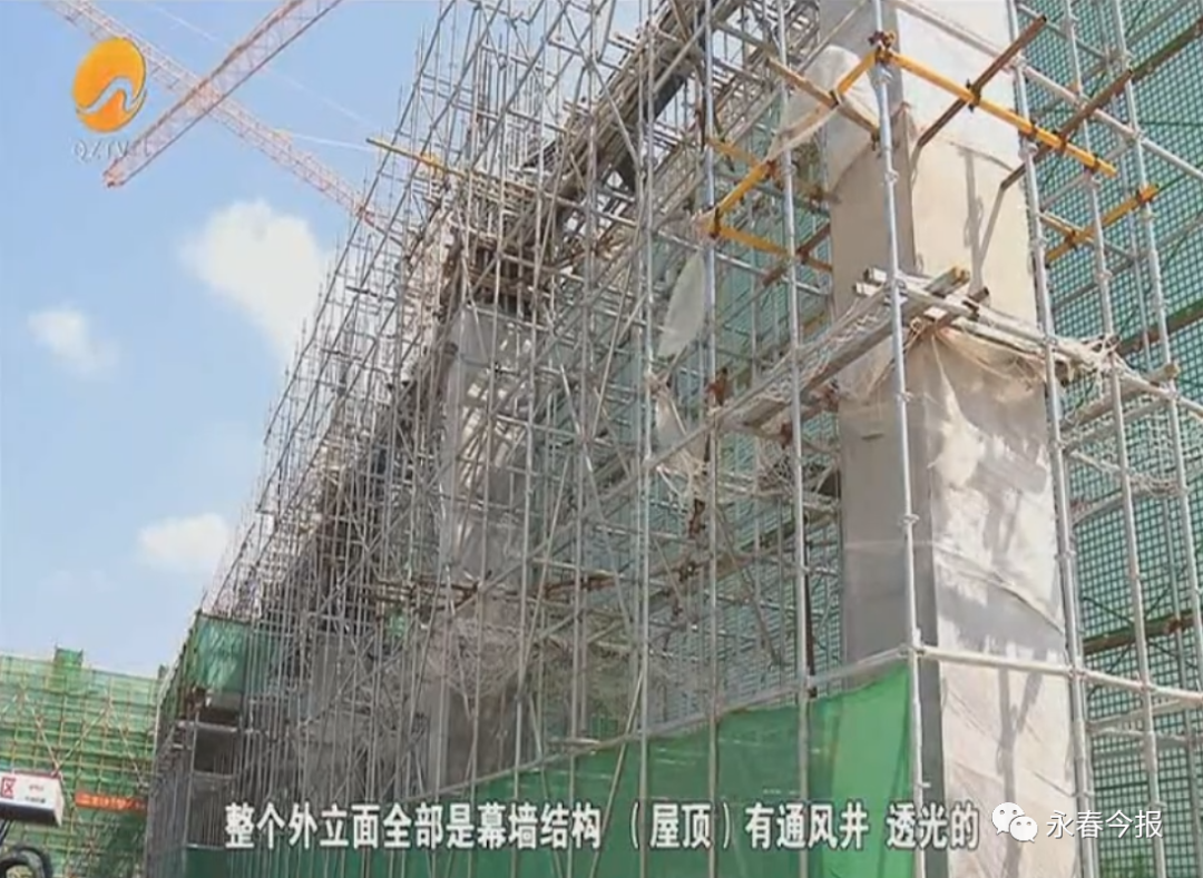 设计过程中,因为永春盛产香,所以在它的外观上增加了十四根外立柱,十四根外立柱子,寓意香柱,整个外立面全部是幕墙结构,(屋顶)有通风井,透光的。