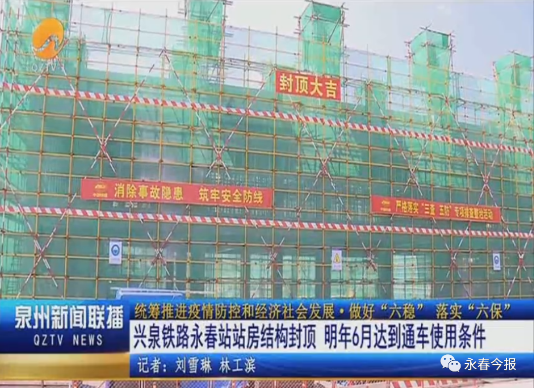 兴泉铁路永春站站房项目位于达埔镇前峰村,项目今年5月份开工,目前客运站房已结构封顶,是兴泉铁路泉州段首个完成结构封顶的站房项目,这样的建设进度位居兴泉铁路全线46个站点第二。