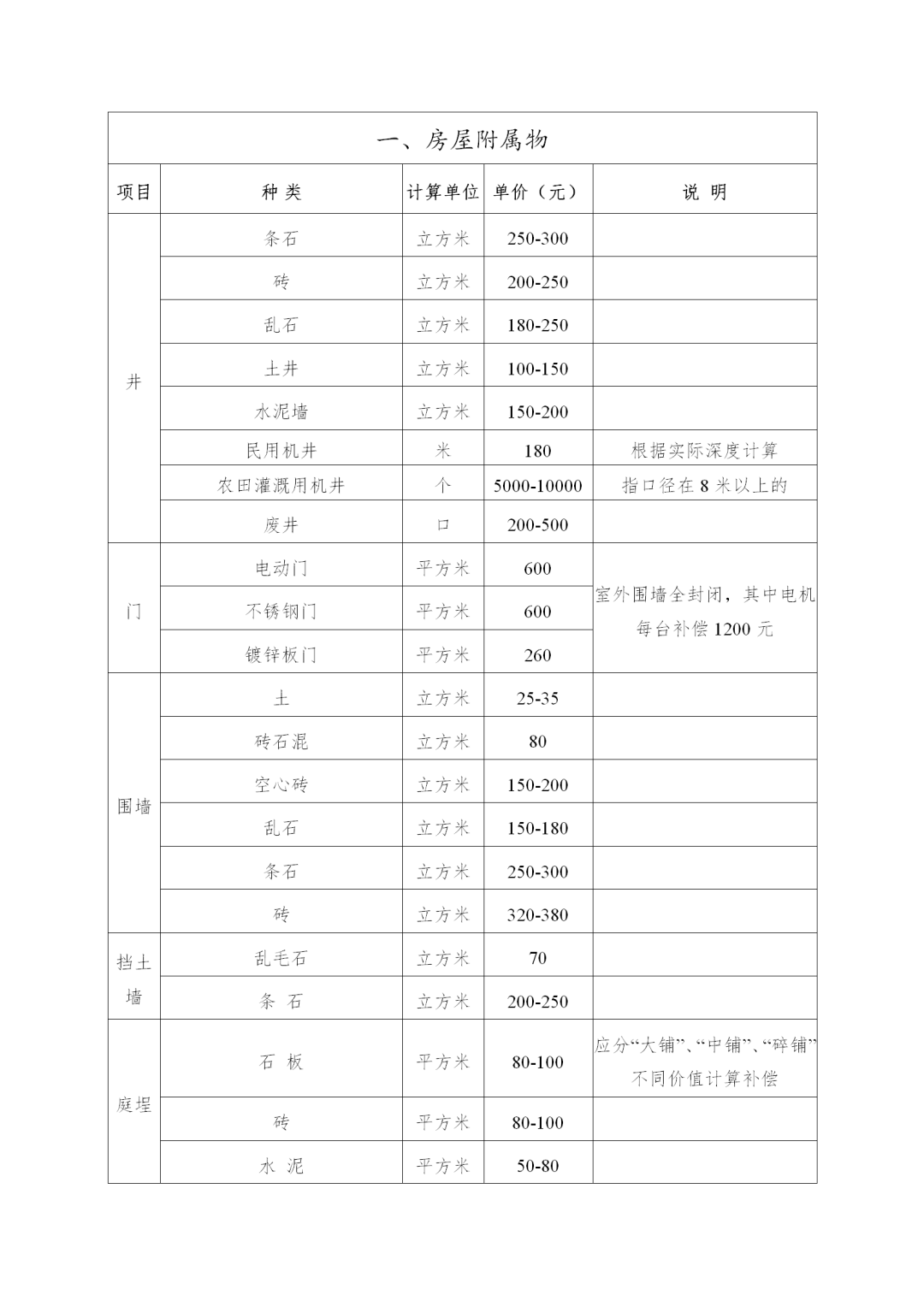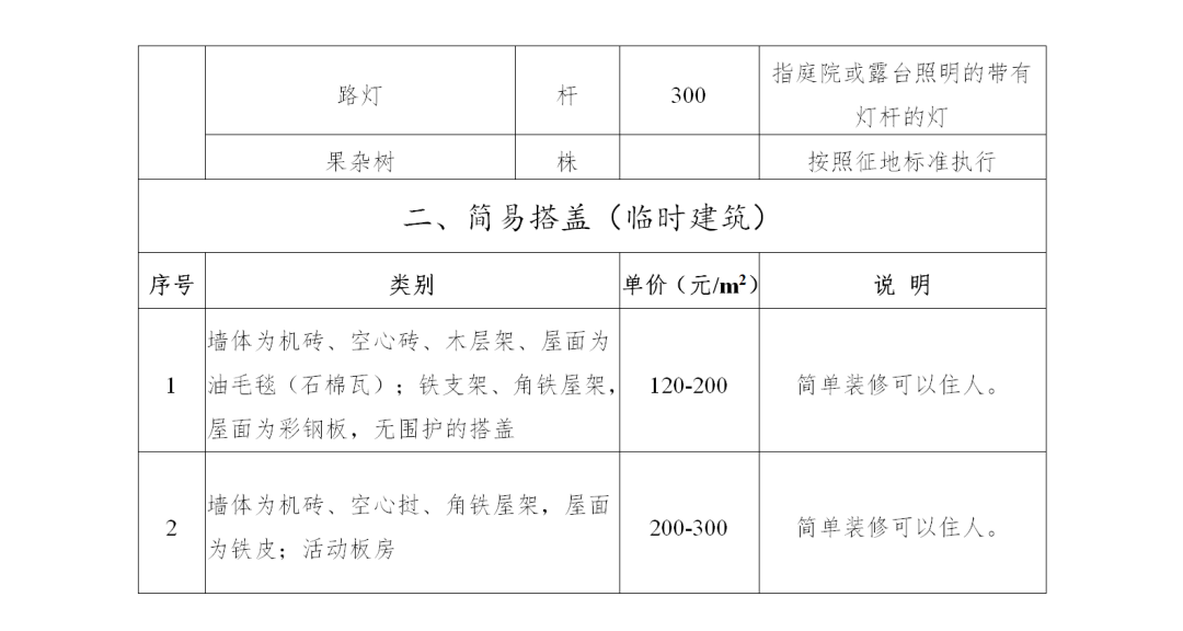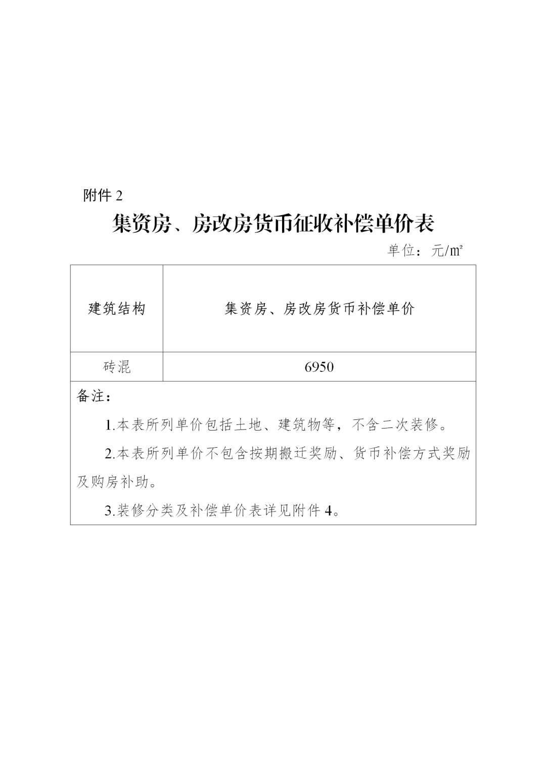 3、被征收住宅(自建房)装修分类及补偿单价表