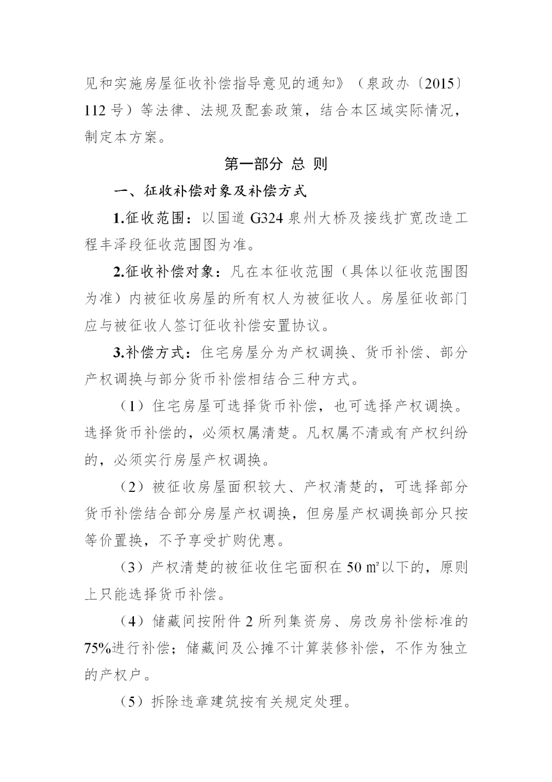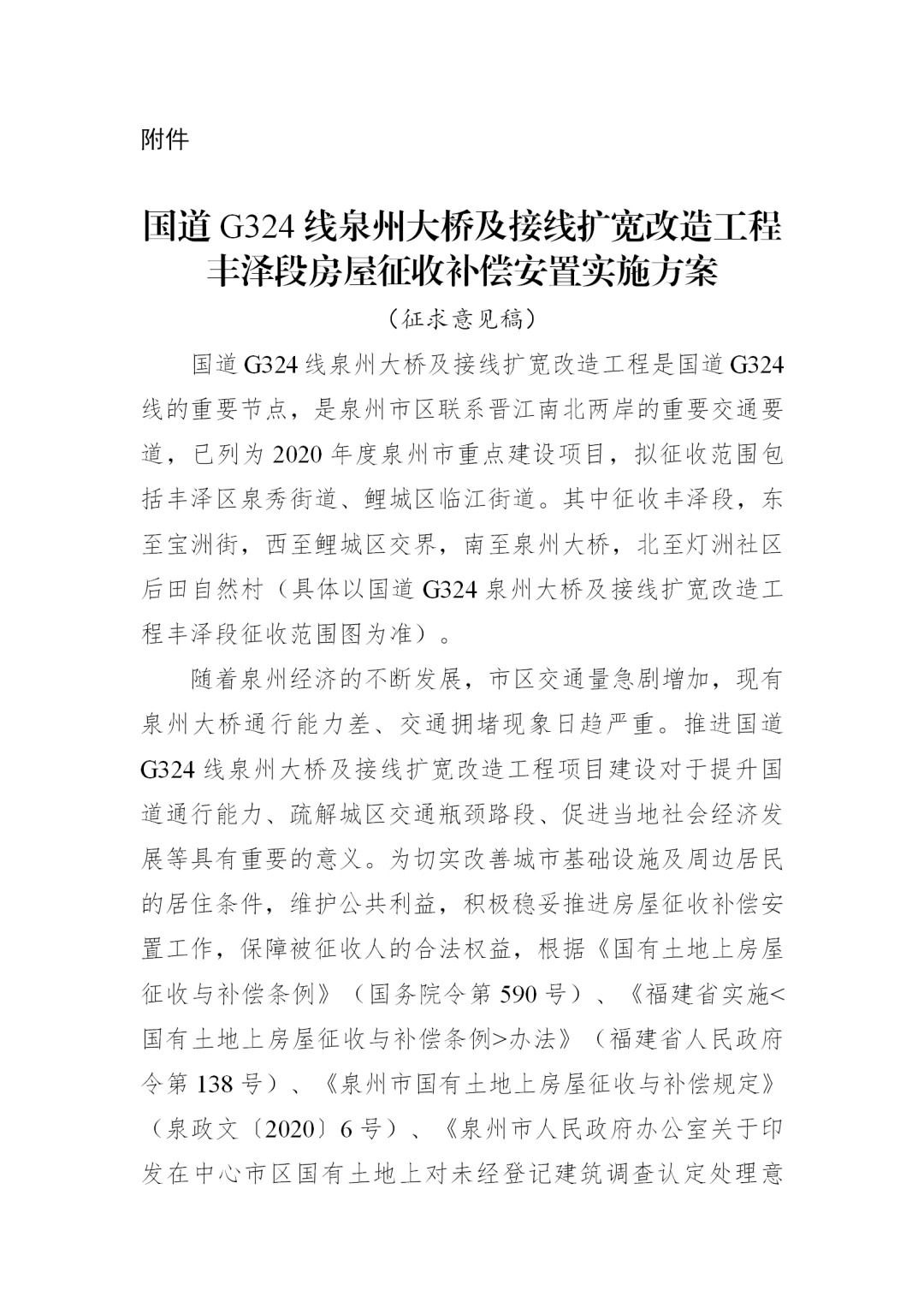 国道G324线泉州大桥及接线扩宽改造工程丰泽段房屋征收补偿安置实施方案(征求意见稿)