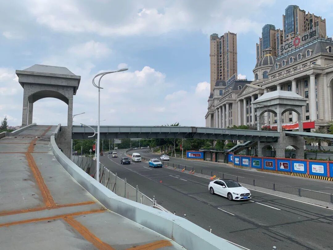 天桥建成投用后,将实现人车有序分离,减少行人、非机动车与地面车流的冲突,方便江滨北路沿线居民往来江滨景观绿道、公园进行休闲运动,优化水线公园的可达性和便捷性。