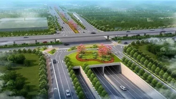 道路标准红线宽度为55米,主线按一级公路兼城市快速路标准设计,设计速度80km/h;辅道按二级公路兼城市主干路设计,设计速度40km/h;匝道按速度40km/h标准设计。