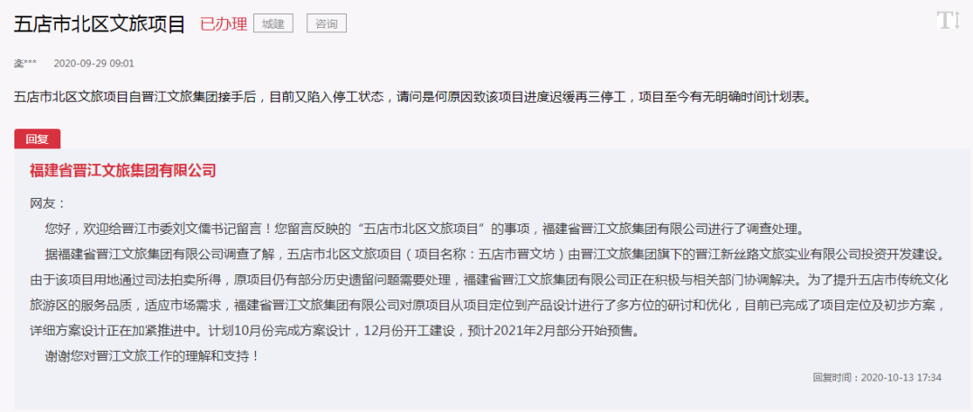 2019年3月,晋江新丝路文旅实业有限公司竞得该地块的土地使用权。