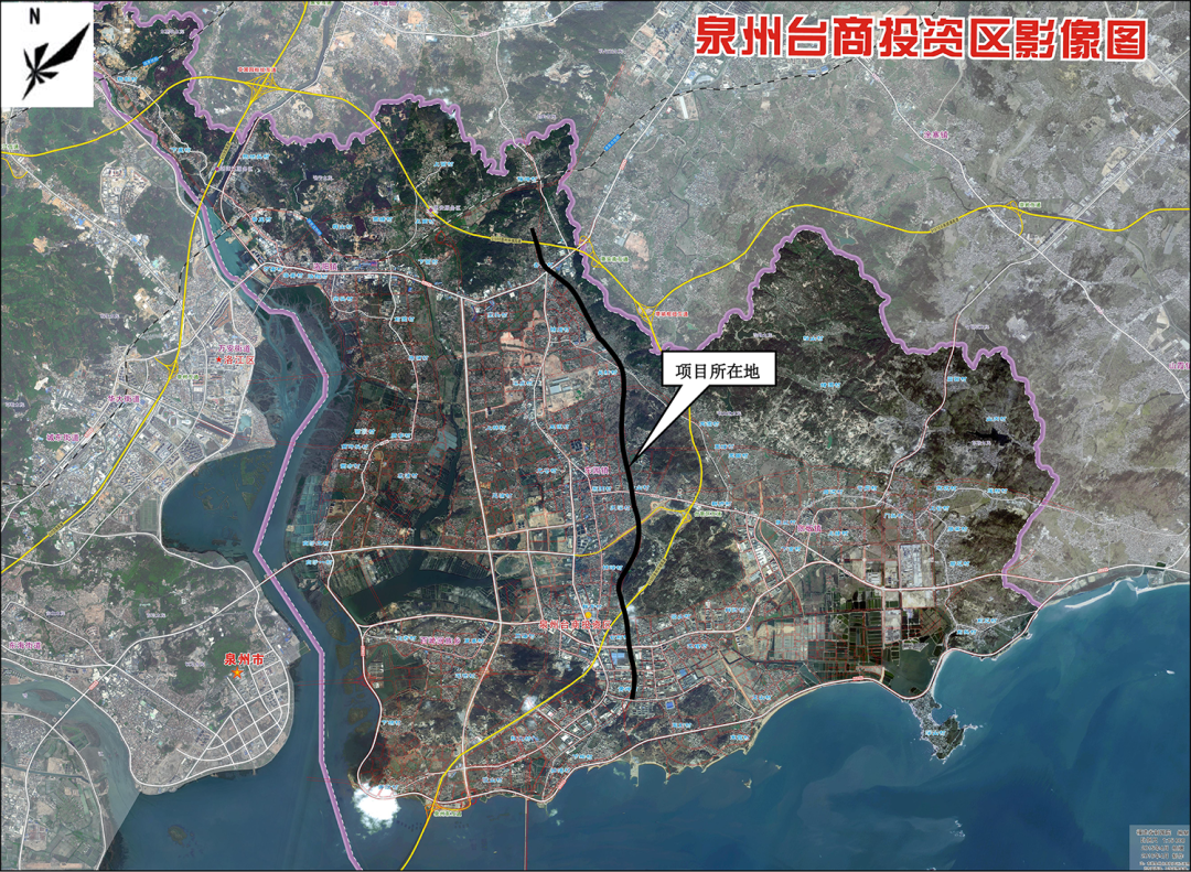 ▲泉州台商投资区海山大道建设工程(泉东大道-绕城高速)与泉州台商投资区海 山大道建设工程的位置关系图