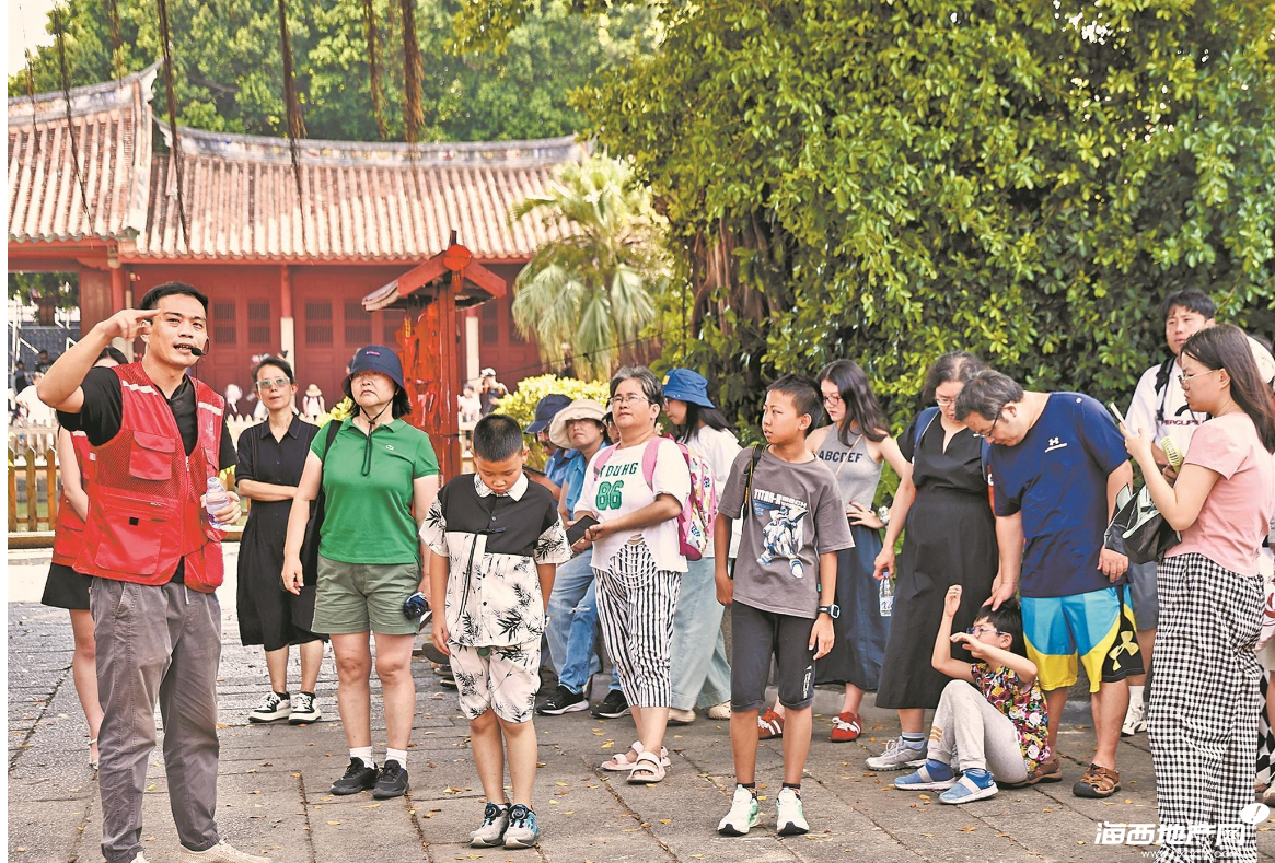 泉州府文庙内,世遗泉州文保志愿者为市民游客作公益讲解。(融媒体记者彭燕珍 摄)