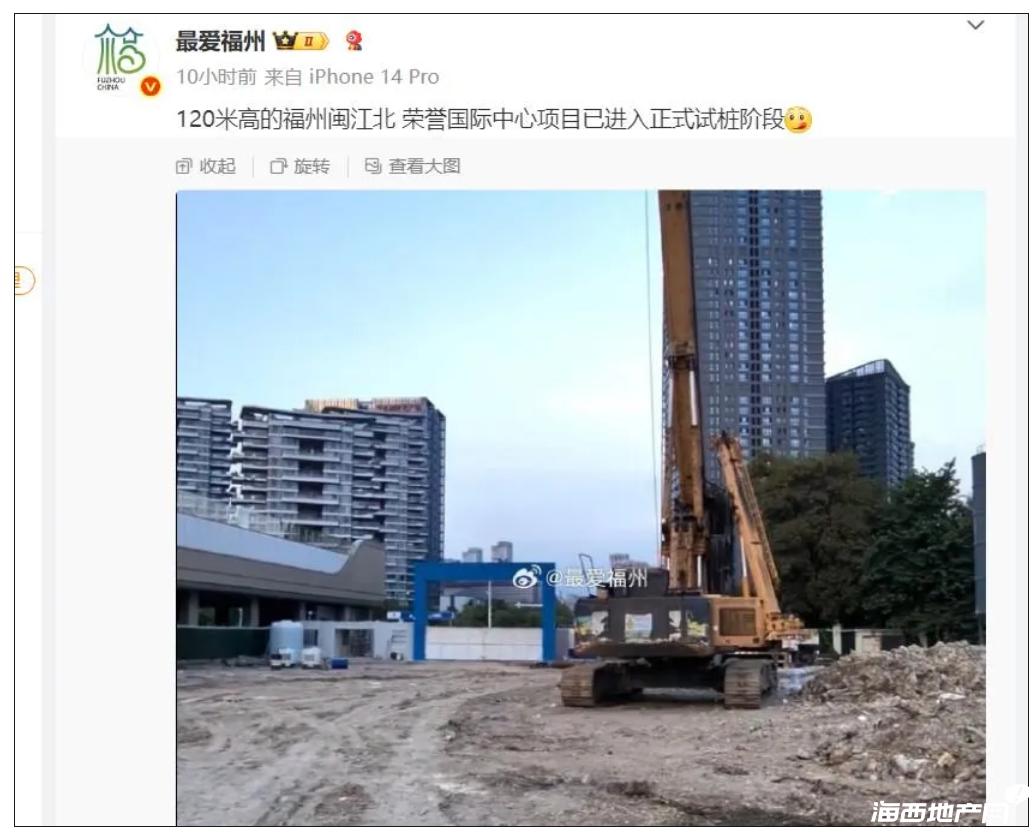 海西房产网(微信公众号:fjhxfcw)消息:据知名微博主@最爱福州报道,位于闽江北CBD的荣誉国际中心项目,已正式试桩阶段。