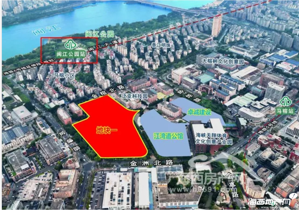 除此之外,官方公布的金塘路与金榕北路交叉口南侧地块航拍图,同样标注规划的地铁6号线西延线“闽江公园站”。