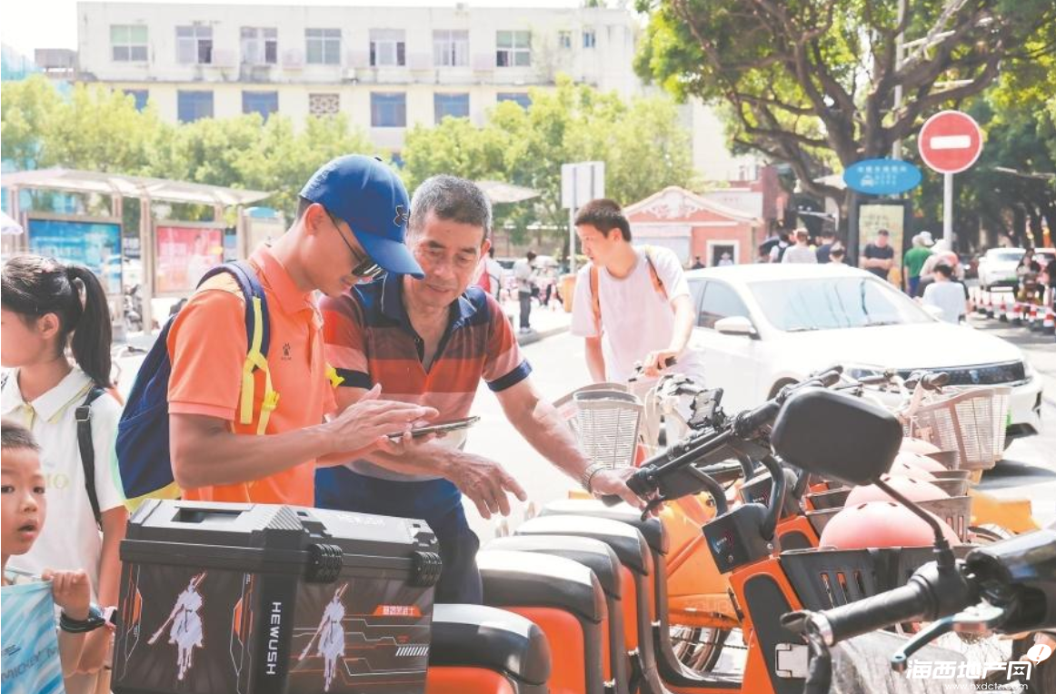 泉州网10月6日讯(融媒体记者 苏凯芳 郑银杰 实习生 吴林羲 文/图)国庆中秋假期的泉州中心市区新华路热闹非凡,毗邻西街、开元寺的中闽百汇门口公共电动车场站,成了游客出行的“交通枢纽”。人流中,一位身着朴素衣衫、头发花白的老人格外显眼:他时而俯身帮游客把帽子归位,再将电动车推进车桩;时而举着手机,手把手教游客点击“结束用车”——他就是1947年出生的庄炳枝,一位在这里义务服务3年的义工。