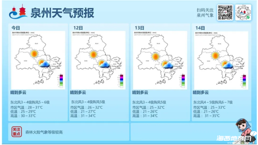 对于我们泉州来说,凉爽天气也要来了,不过还得近十天。“泉州转凉预计在本月下旬。”裴昌春说,根据目前预报,即日起至10月18日,全市大部分地区最高气温30℃,局部地区会超过35℃,10月19日—20日,全市大部分地区最高气温将低于30℃。