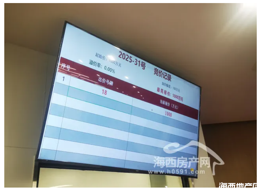 经过1轮竞价,18号竞买人福州地铁置业有限公司以底价1000万竞得福州宗地2025-31号,楼面地价5374.61元/㎡。