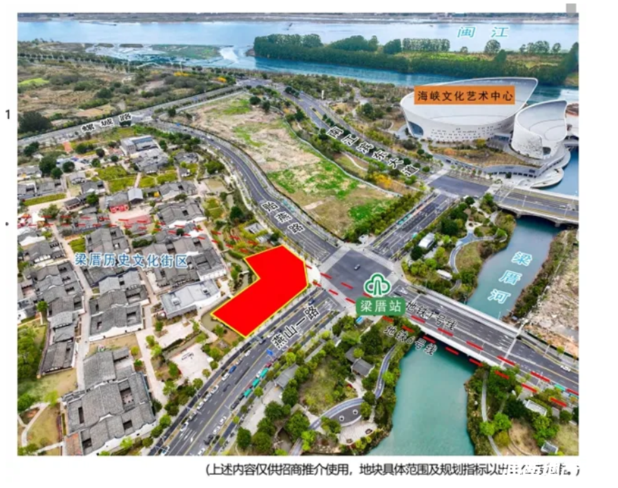 地块所在片区文化底蕴深厚,配套资源丰富:紧邻梁厝历史文化街区,保留了大量传统古民居建筑,农耕文化特色鲜明,与海峡文化艺术中心仅咫尺之遥,形成三江口文旅新地标,兼具历史文化底蕴与现代艺术气息。